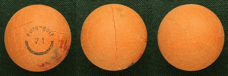 4.) B&M A9, Euro 61, 87, 90 und Wagner 29, mit zum Teil erheblichen Verformungen, durch Überhitzungung. in den Sommermonaten). Ein typisches Merkmal dafür sind die Verwerfungen des Rohmaterials mit dem Lack, die an Gebirge erinnern. Im laufe der Jahre härtet der Ball zudem unterschiedlich stark aus. Zwischen den Messungen an unterschiedlichen Stellen können bis 50 Shore A liegen.